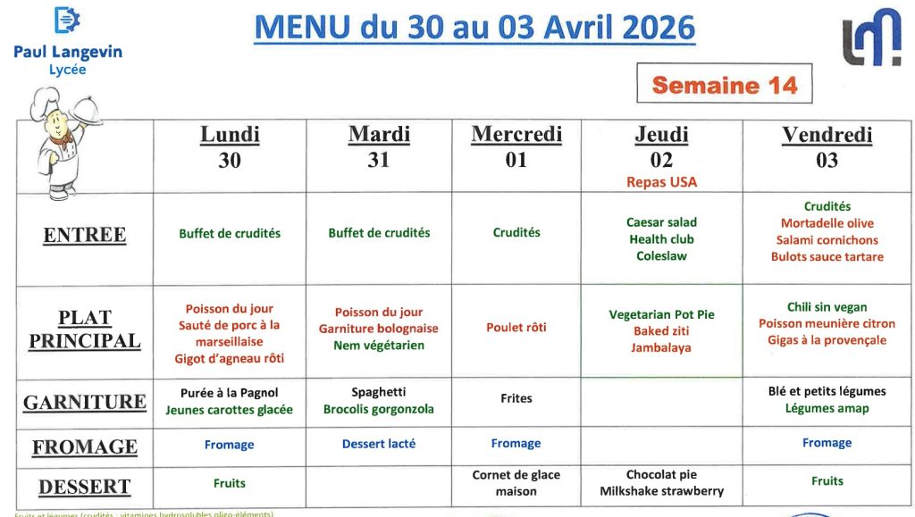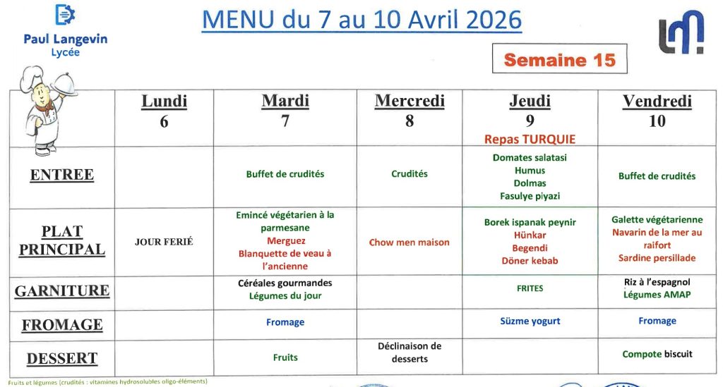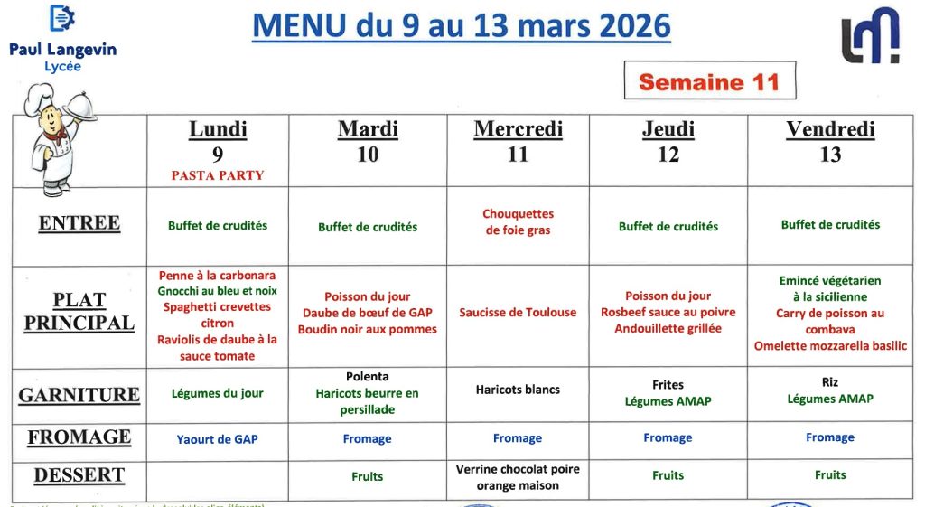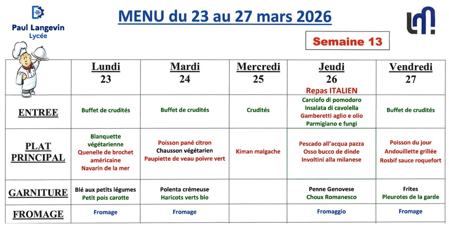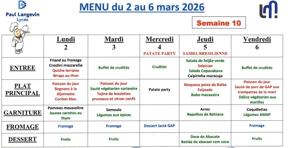 Au lycée Paul Langevin, plusieurs solutions sont proposées aux élèves pour se restaurer. Ils ont la possibilité de prendre leurs repas à la cantine, qui propose des menus équilibrés dans un cadre collectif.